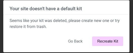 "Seems like your kit was deleted, please create new one or try restore it from trash." How can we resolve this?